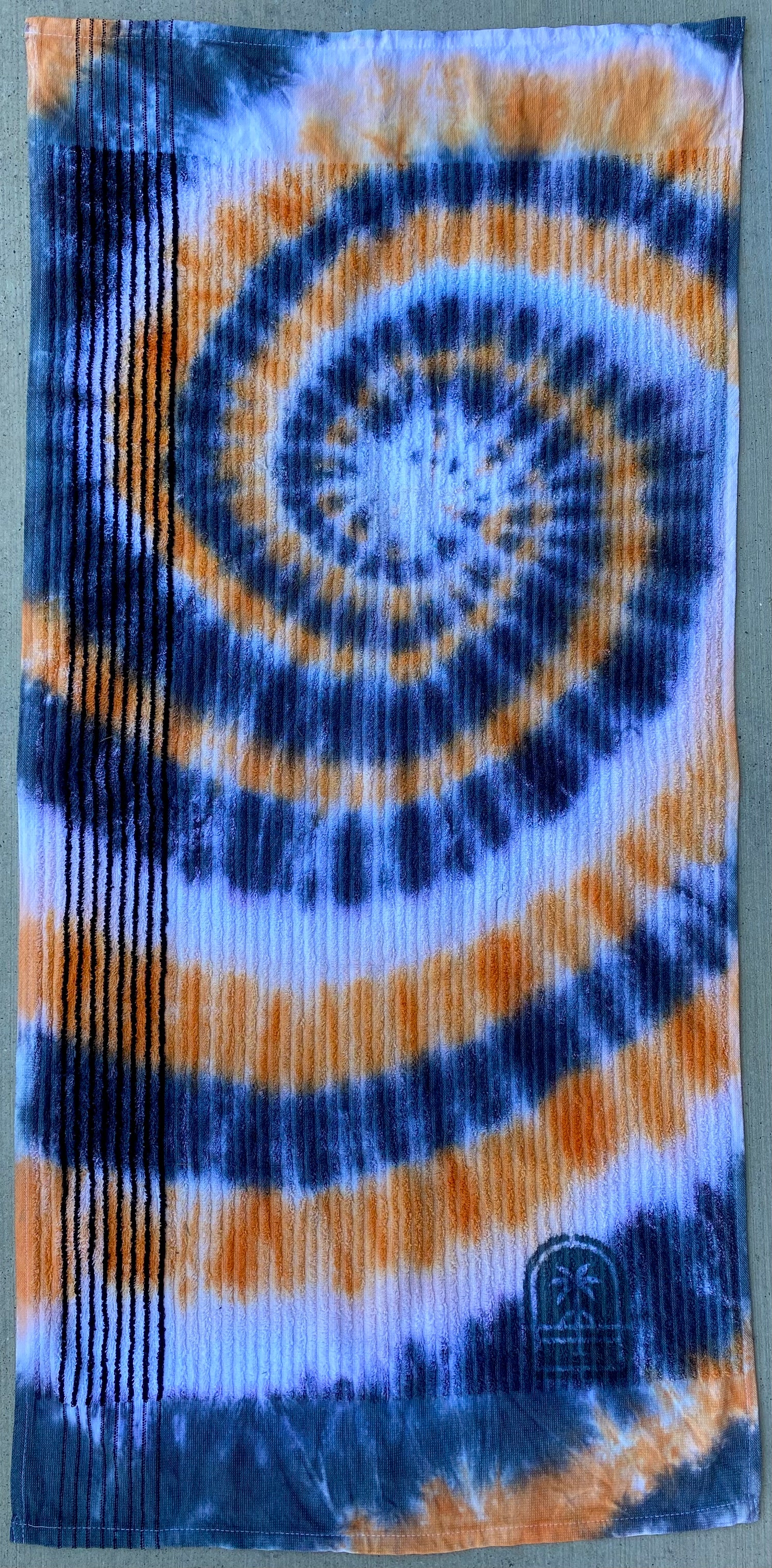 22x44” hand tie-dyed black stripe gym towel with Sideways logo stenciled in bottom corner.